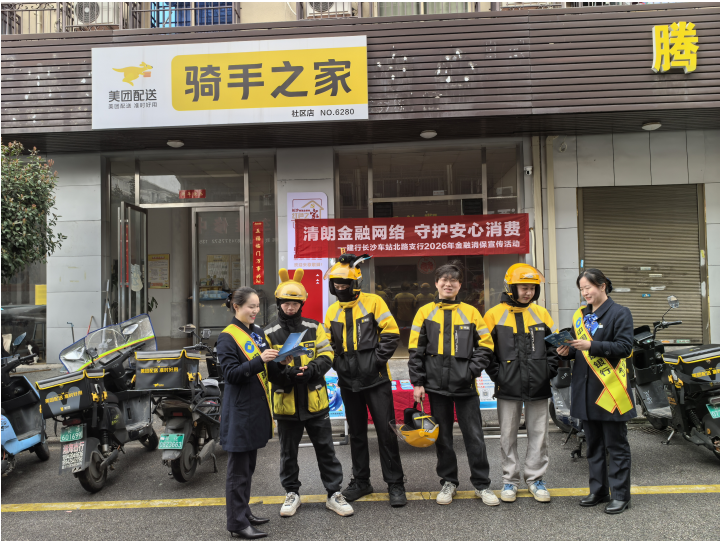 此次宣传立足新就业团体实际,将金融知识普及与外卖服务有机结合,宣传针对性、吸引力与实效性显著增强,有效提升其金融素养、法治意识与风险防范能力,得到了外卖骑手们的一致认可与好评。下一步,建行长沙车站北路支行将持续践行金融为民初心,不断延伸金融服务触角,以实际行动守护金融消费者合法权益,为新就业群体稳健发展保驾护航。(建铁宣)