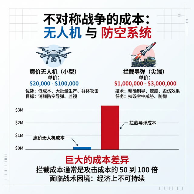 【图4:3.5万美元无人机对决400万美元防空导弹的极度不对称效能差】