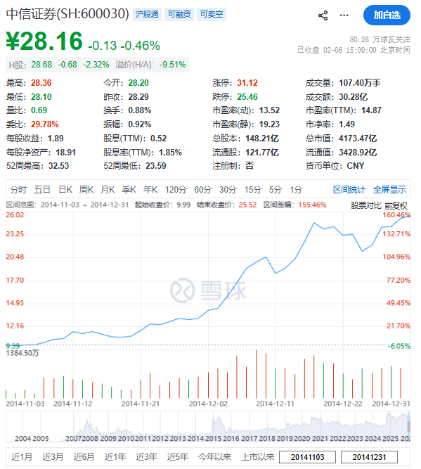 例如2014年11月,中信证券在短短两个月内上涨超过155%,而同期沪深300涨幅才40%。