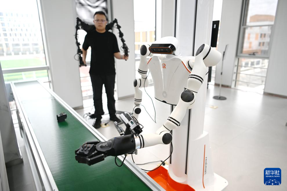3月17日,在中国雄安集团数字城市科技有限公司具身智能训练场,工作人员采集机器人训练数据。