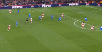 第20分钟,空间太小,阿森纳前场连续配合被断