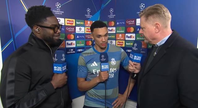 欧冠1/8决赛次回合,皇马客场2-1战胜曼城,皇马后卫阿诺德赛后接受了CBS体育的采访。