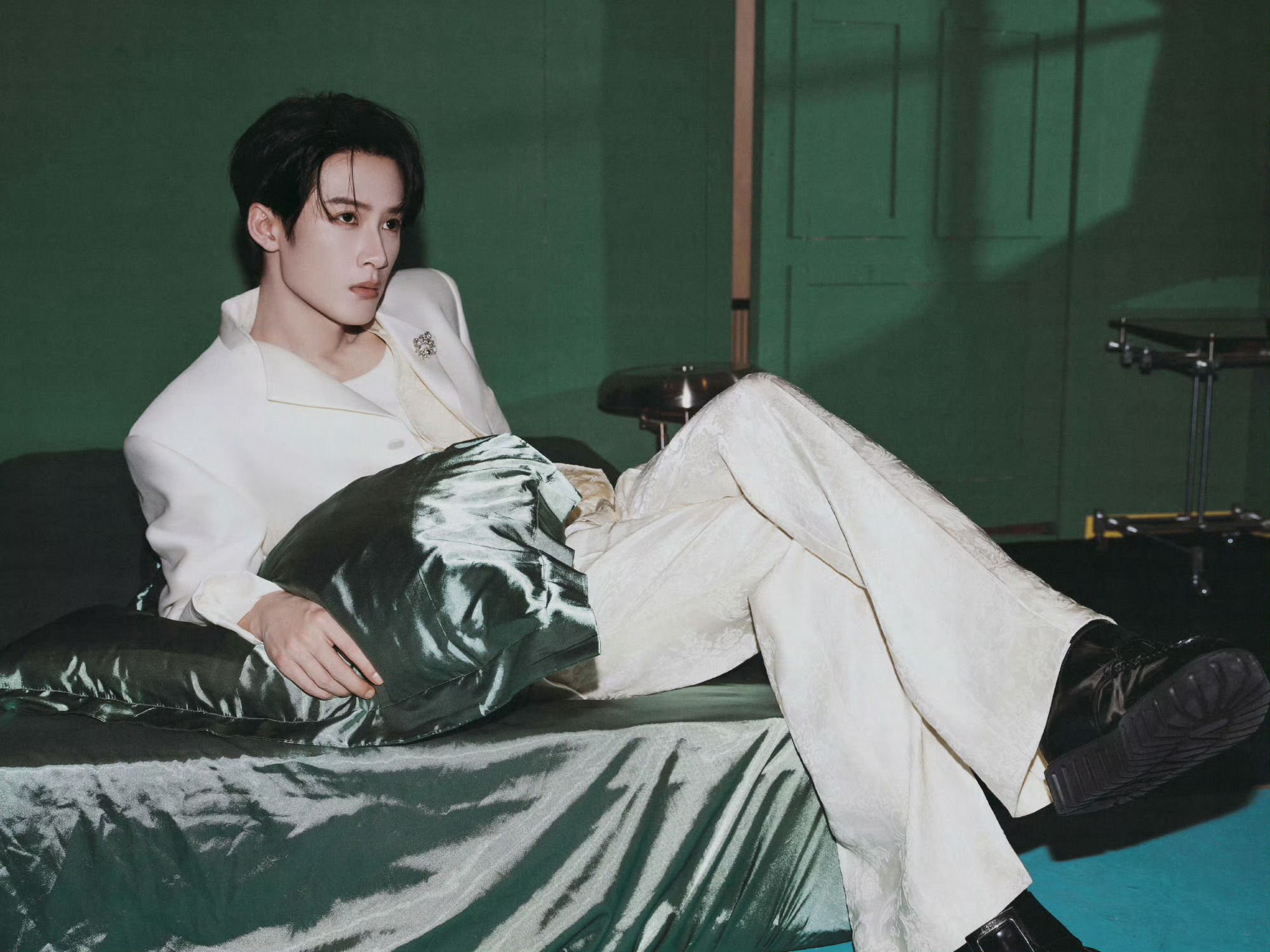 檀健次纯白西装造型惊艳,钻饰胸针尽显矜贵风度