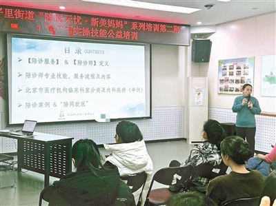 北青报记者获悉,从2025年开始,地方政府和公益机构已开始探索规范化路径。同年3月,成都27人获得首批陪诊服务专项职业能力证书;上海首批经过规范化培训的陪诊师已在杨浦区持证上岗,并发布了相关标准。2026年1月22日,北京市东城区和平里街道启动第二期“陪医无忧·新美妈妈”陪诊师公益技能培训,目前该项目已助力109位学员考取“医疗陪诊顾问”证书,其中40余人已走上陪诊服务岗位。