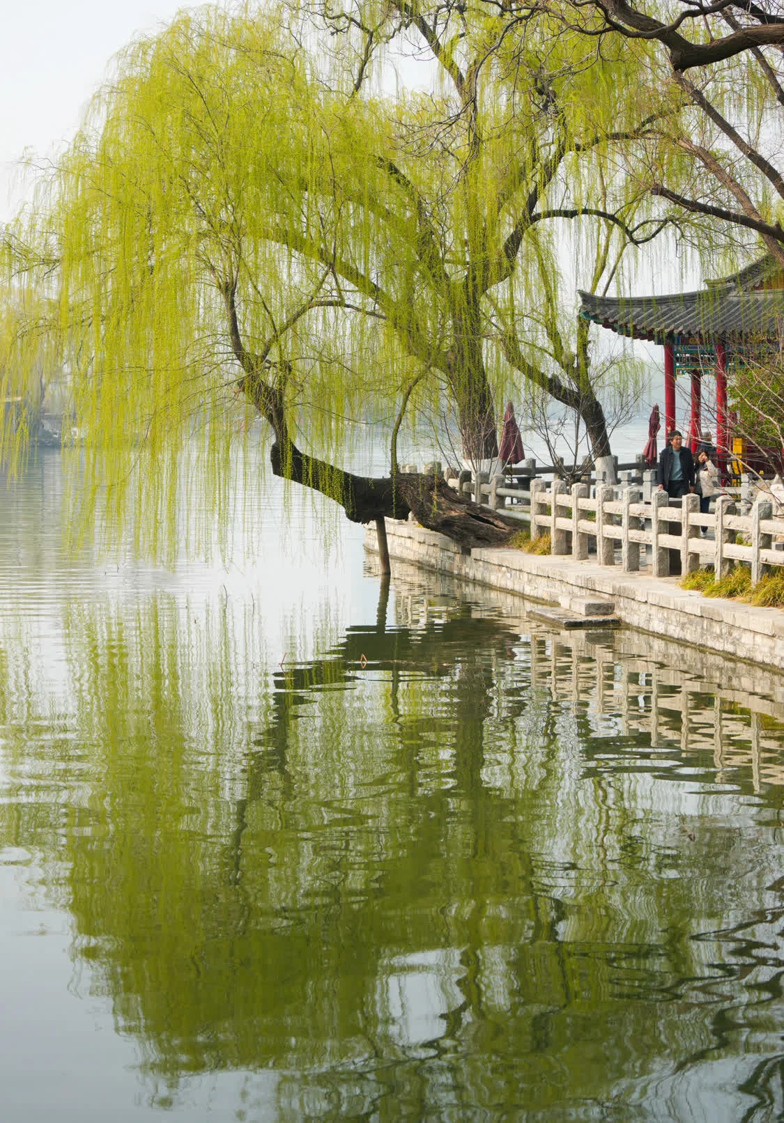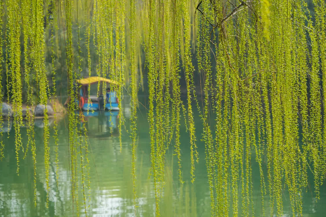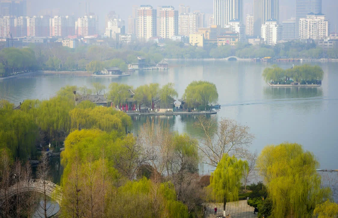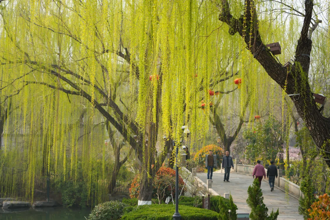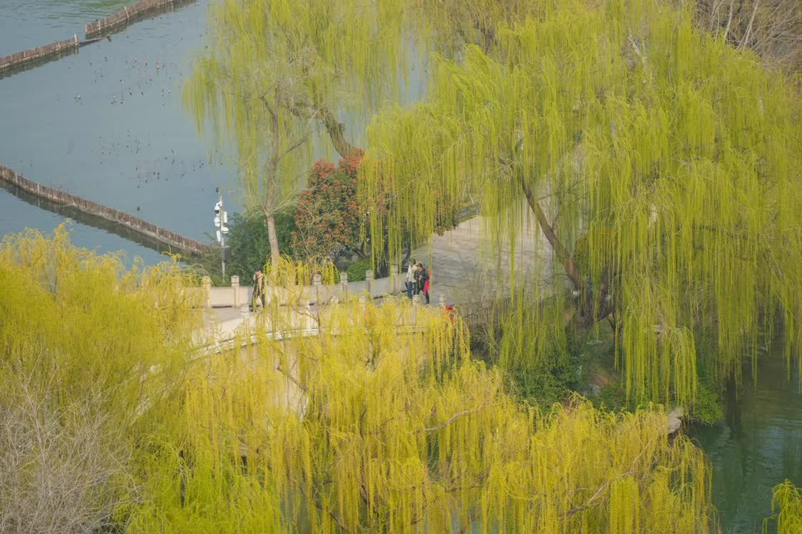 近日,山东省济南市气温回升,大明湖畔的柳树披上新绿,吸引游客前来踏春游览。大明湖位于济南市区,湖岸种有大量柳树,以“四面荷花三面柳,一城山色半城湖”的风光闻名。