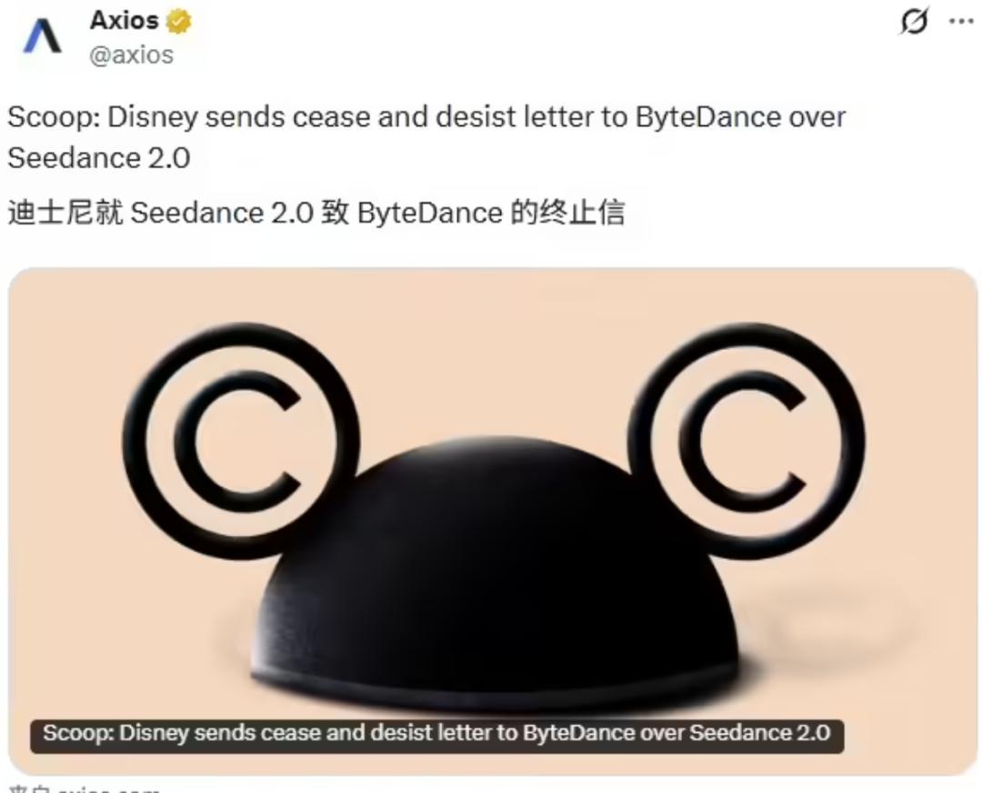 迪士尼律师David Singer指控,“字节跳动对迪士尼IP的虚拟掠夺是蓄意、普遍且完全不可接受的。我们认为这只是冰山一角,更令人震惊的是,这仅仅是Seedance 2.0上线几天之内发生的事情。”随后,华纳兄弟探索、派拉蒙、Skydance、Netflix和索尼影业也联合发出停止侵权函。五大制片厂齐齐发声,美国电影协会亦对事件表示谴责,其董事长兼首席执行官Charles Rivkin要求立即停止相关行为。