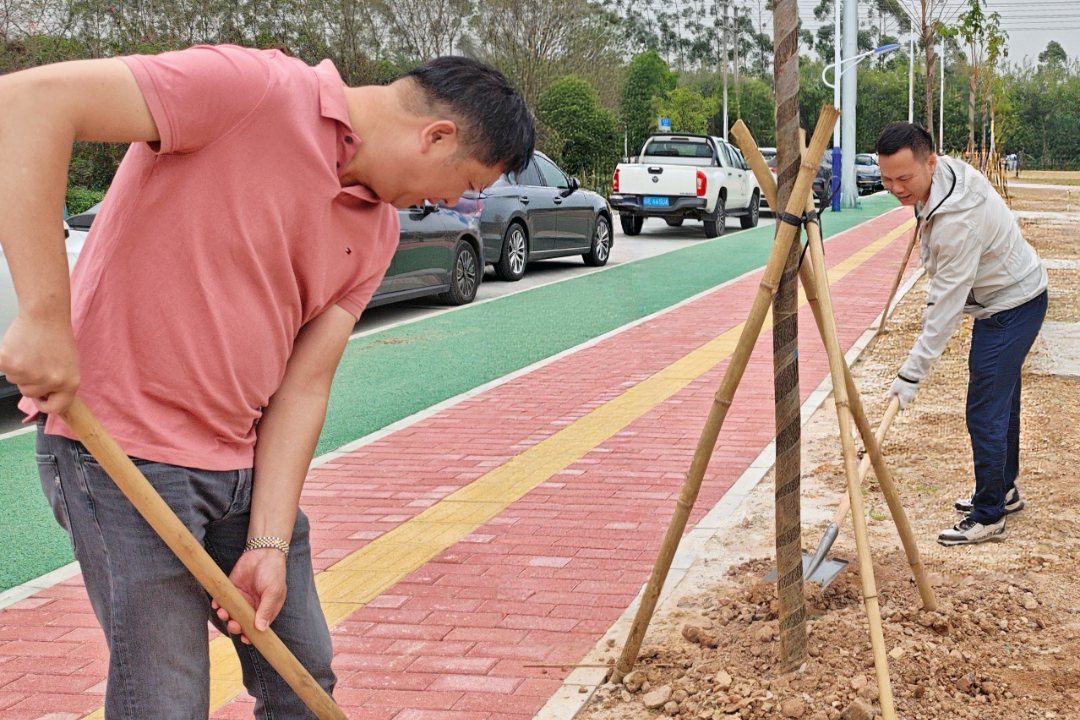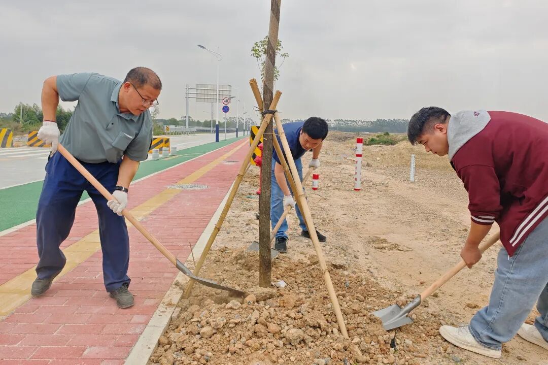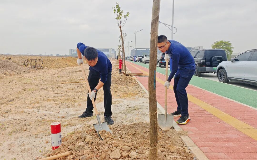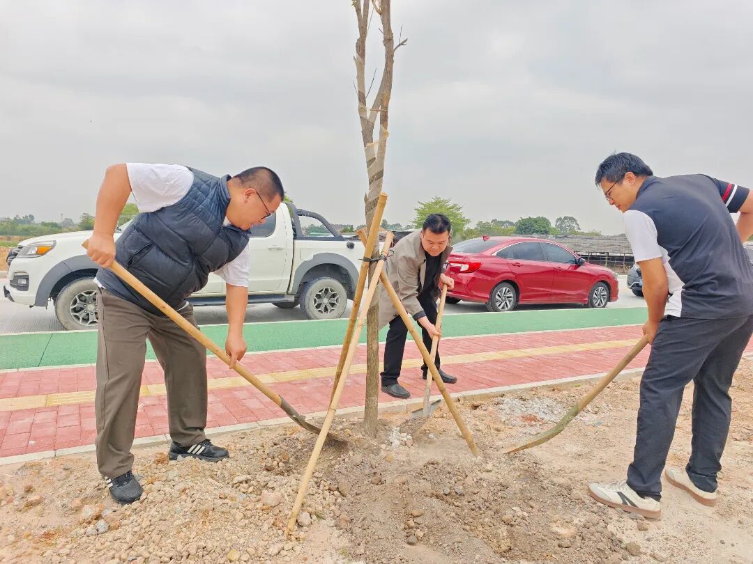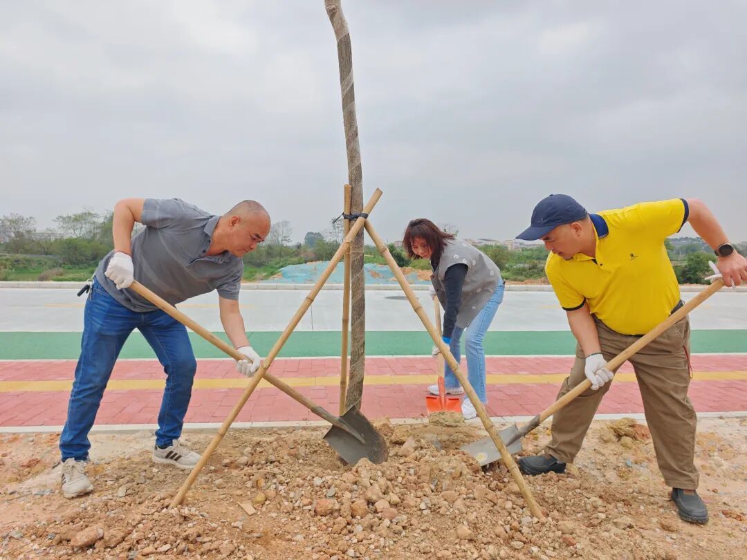 本次活动主题为“植新绿 开新局 谱新篇”,2026年是我国开展全民义务植树运动45周年,也是 “十五五”开局之年。活动当天,参加人员挥锹铲土、扶苗培土、提水浇灌,亲手栽下一棵棵充满生机的树苗,共计种下101株黄花风铃木。