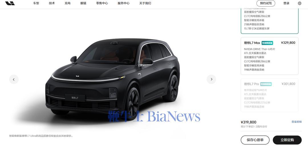 电车界查看理想汽车官网发现,目前理想L7 Pro版本已不可选购;