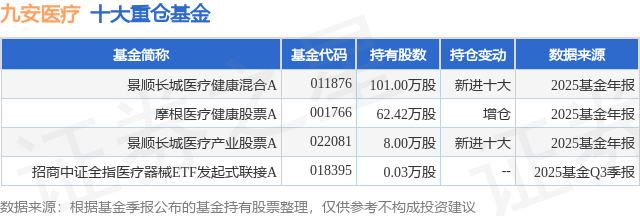 重仓九安医疗的公募基金请见下表: