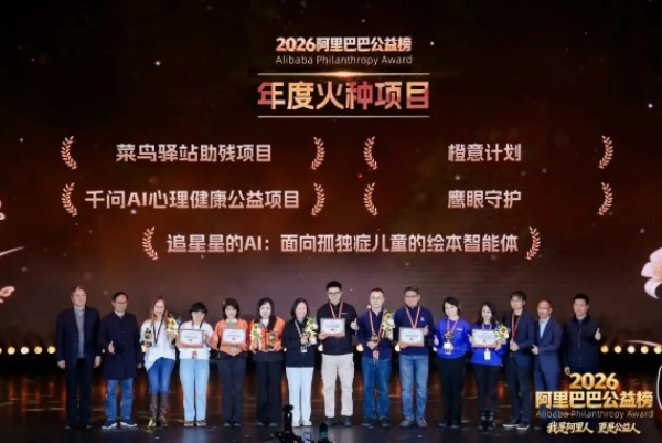 3月16日晚,浙江杭州,2026年第十届阿里巴巴公益榜颁奖典礼现场。作为特邀嘉宾,芜湖盲校的老师们见证了这场温暖与坚持的盛典。