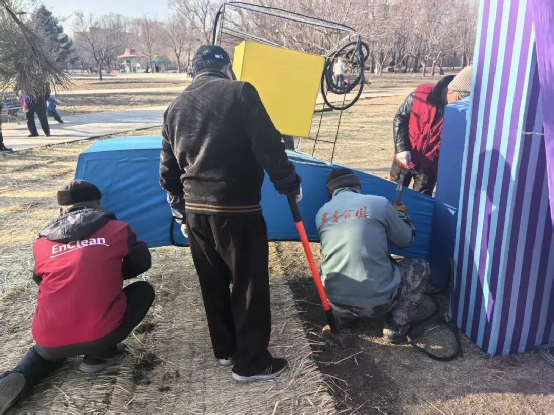 为确保灯组迁移工作安全、高效推进,最大限度保留灯组的完整性。公园组织专业人员集中讨论,重点解决灯组体积较大、搬运不便、易损坏等问题。经过综合考量,最终确定采用安装万向轮的方式进行运输,该方式不仅能实现灯组顺滑移动,降低搬运过程中的摩擦与碰撞损伤,还能节省人力投入,提高迁移效率,有效保障灯组在迁移过程中的结构完整与外观完好,为后续重复使用奠定基础。