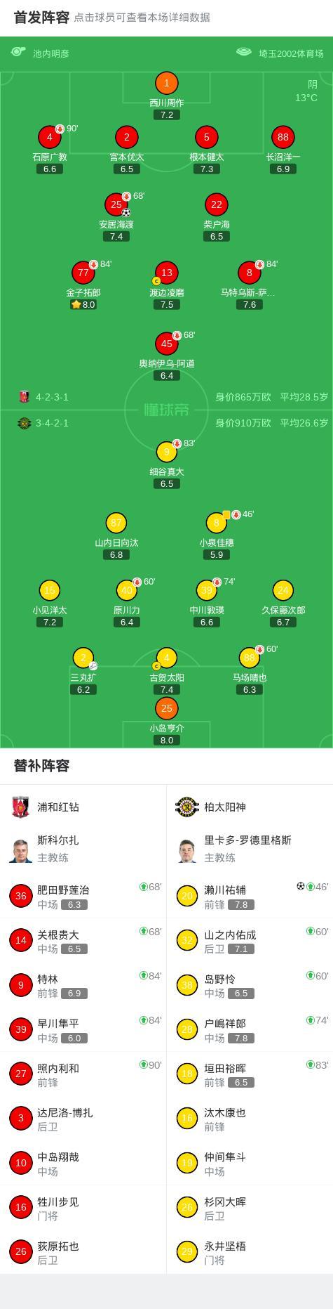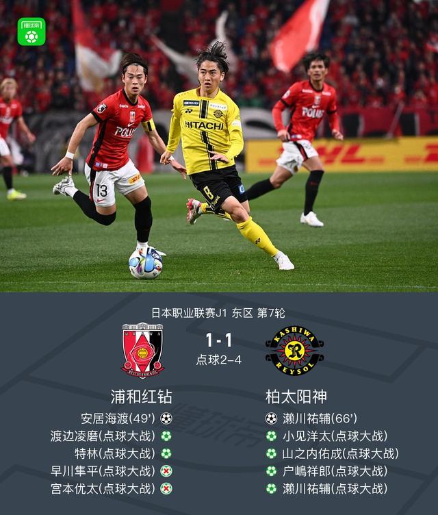 北京时间3月18日日本职业联赛J1 东区 第7轮,浦和红钻主场对阵柏太阳神。浦和红钻安居海渡破门。柏太阳神濑川祐辅破门。最终比分浦和红钻 3-5 柏太阳神。