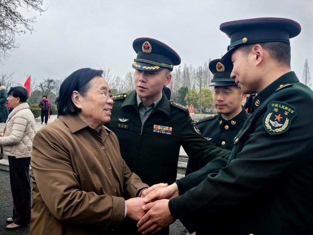 李爱云奶奶和连队官兵代表亲切交谈。崔帅宇 摄