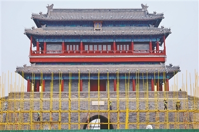 北京中轴线南端地标永定门城楼已搭设黄色脚手架,正式进入主体修缮施工阶段。北京青年报记者从东城区文旅局获悉,此次修缮是城楼2004—2005年原址复建以来的首次全面大修。