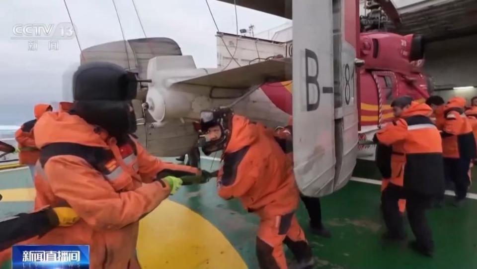 三个月前,中山站附近还是一片海冰,现在已变成了汪洋,几座冰山浮在海上。“雪龙”号停靠在距离中山站10公里的海域。考察队要将航空煤油、食品等物资送上站区,“雪鹰102”直升机成为唯一的运输手段。此时“雪龙”号的在船人员约51名,要将直升机从机库里推出来,几乎要全员上阵推飞机。