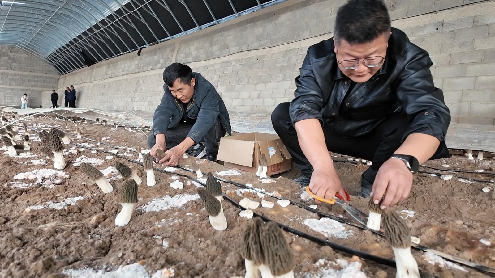 走进金塔县羊井子湾乡,一座座日光温室鳞次栉比、整齐排列。温室内暖意融融,一朵朵形态饱满、肉质肥厚、菌纹清晰的羊肚菌错落挺立。何立超和工人们穿梭在垄间小道上,小心翼翼地进行采摘。今年是他在羊井子湾乡第一年种植羊肚菌,通过科学种植和规范管理,有效保障了羊肚菌的品质。
