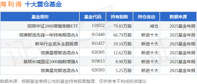 根据2025基金年报公募基金重仓股数据,重仓该股的公募基金共6家,其中持有数量最多的公募基金为招商基金的招商中证2000增强策略ETF。招商中证2000增强策略ETF目前规模为5.42亿元,最新净值2.1714(3月18日),较上一交易日上涨1.51%,近一年上涨37.79%。该公募基金现任基金经理为邓童。邓童在任的基金产品包括:招商中证500指数增强A,管理时间为2021年11月23日至今,期间收益率为33.55%;招商大宗商品(LOF),管理时间为2021年12月2日至今,期间收益率为53.41%;招商中证煤炭等权指数(LOF)A,管理时间为2021年12月2日至今,期间收益率为61.04%;招商北证50成份指数发起式A,管理时间为2022年12月22日至今,期间收益率为44.06%。
