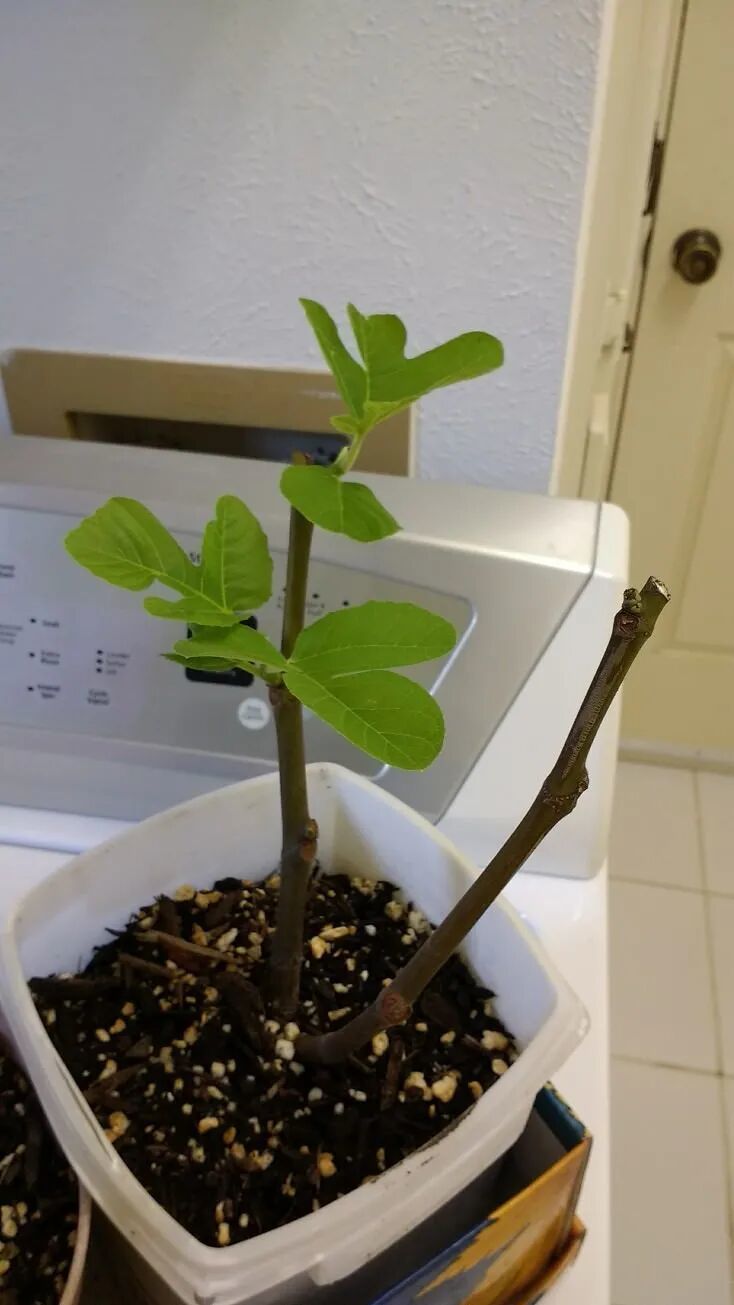 无花果枝条顶部的一些芽眼处就会长出一些小芽,慢慢会长成叶子,长出小芽后就要放在有适当散射光的地方,等根系长满整个小花盆之后,就可以直接种在一个稍微大一点的花盆中,在光照充足的地方,等无花果的根系长满花盆,就可以直接带土换到更大的花盆中,用这种方法繁殖无花果成功率是极高的。