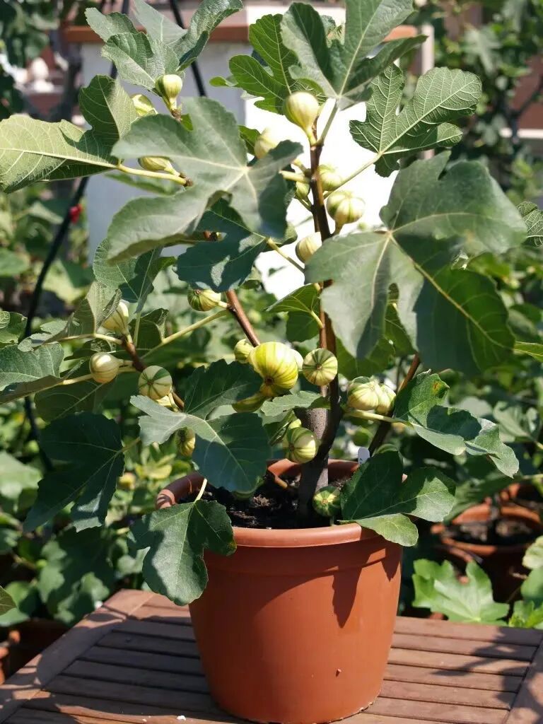 很多人不知道,无花果其实也是可以开花的,它是桑科榕属的落叶灌木,花朵其实就是隐藏在果实里(那就是变形后的果),会有一些授粉的蜂钻到无花果的果实里进行授粉(有去无回)。无花果的果量是非常丰富的,而且可以持续不断地长出来,从春末一直到秋季,就可以吃到无花果的果实,新鲜的无花果可以直接采来吃,也可以晒干,甚至可以用来煮粥,是非常好的一种盆栽水果。