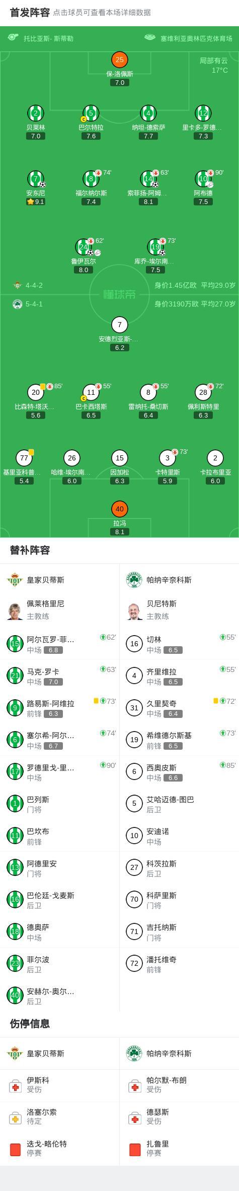 第8分钟,库乔-埃尔南德斯远射击中横梁,鲁伊瓦尔补射破门,贝蒂斯1-0