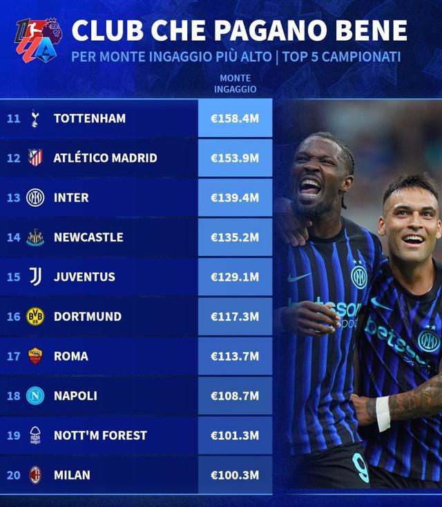北京时间3月20日,德转统计出了本赛季欧洲五大联赛球员年薪最高的20支球队,皇家马德里超3亿欧元高居第一,曼城第二,拜仁慕尼黑第三。