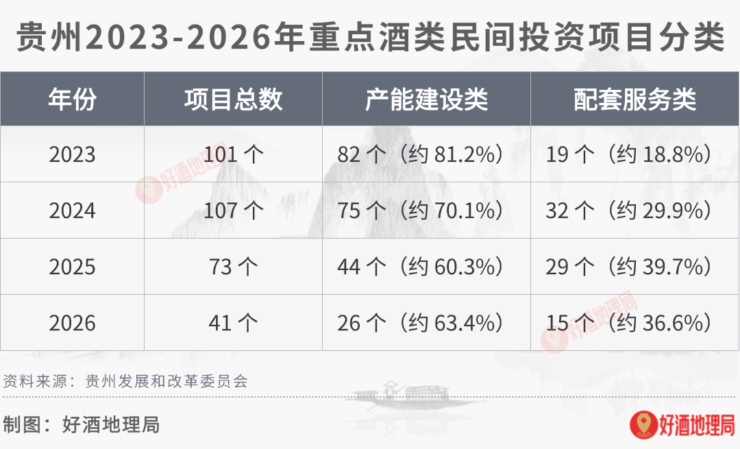 配套服务类项目的地域分布也更加均衡,除了核心产区外,黔东南、黔南等区域的配套项目也有所增加,推动了全省酒业的协同发展。