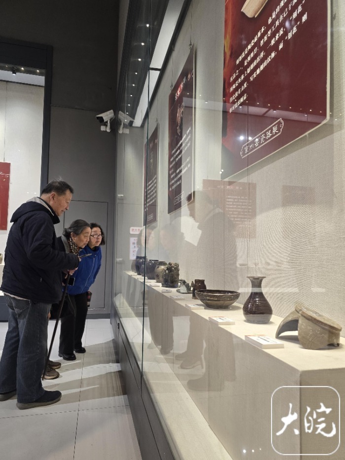 大皖新闻记者在展览现场了解到,唐宋时期是我国陶瓷发展史上的高峰时期,南北各地名窑林立,群星璀璨,宣州窑名列其中。历史文献对宣州窑的记载有限且说法不一,有关古宣州窑的窑址位置、烧造年代以及瓷器形制等均无定说。