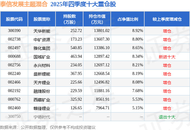 重仓永兴材料的前十大公募基金请见下表: