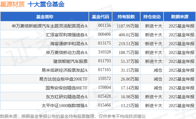 重仓星源材质的前十大公募基金请见下表: