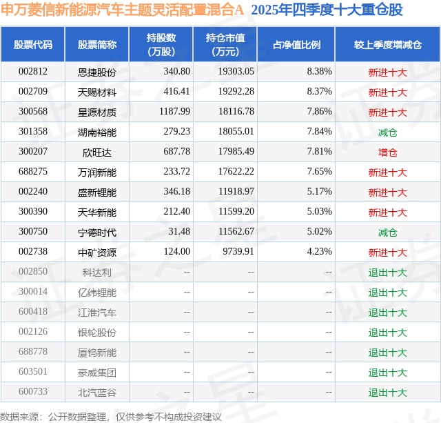 申万菱信新能源汽车主题灵活配置混合A的前十大重仓股如下: