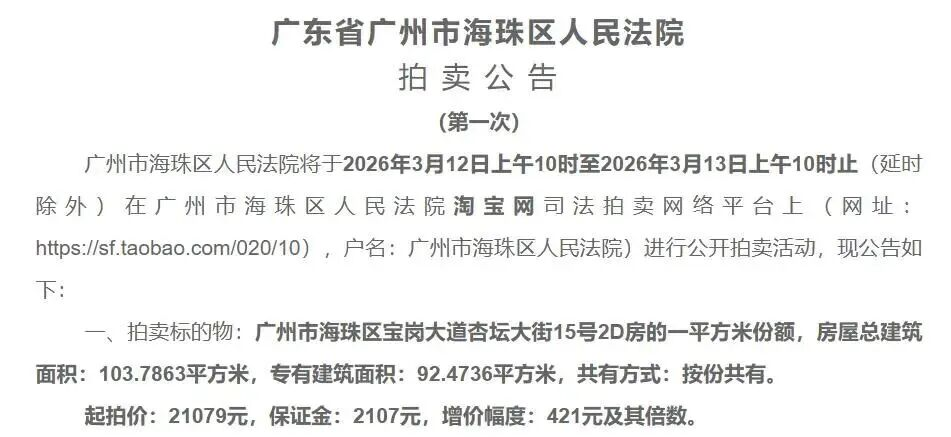 2026年3月,一起司法拍卖,祭出王炸开局。