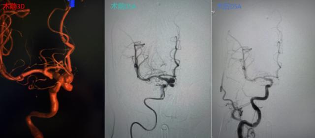 面对宽颈动脉瘤的难题,团队巧妙运用支架辅助栓塞技术,将一根根弹簧圈严密填塞入动脉瘤囊内。术后即刻造影显示,动脉瘤腔内血流消失,载瘤动脉通畅无阻,手术取得圆满成功,患者已康复出院。