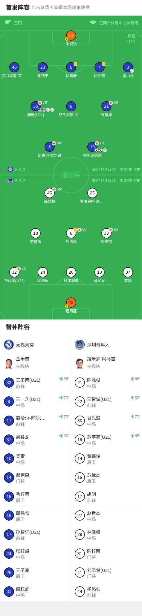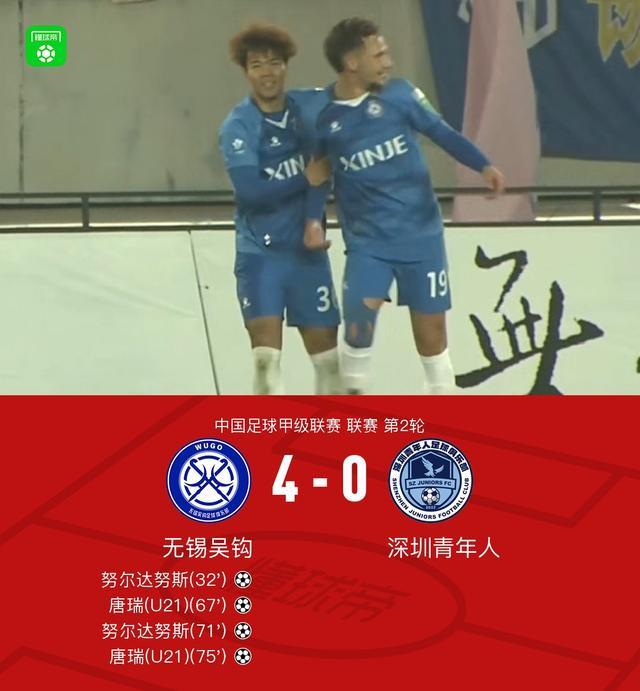 北京时间3月20日,中国足球甲级联赛第2轮,无锡吴钩主场对阵深圳青年人。比赛中,唐瑞贡献两射两传,努尔达努斯完成两射一传。最终,无锡吴钩4-0大胜深圳青年人。