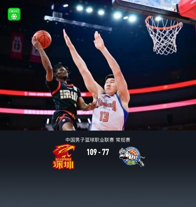第四节深圳阿立兹-约翰逊拿下7分,新疆冯傲拿下5分,最终深圳109-77战胜新疆