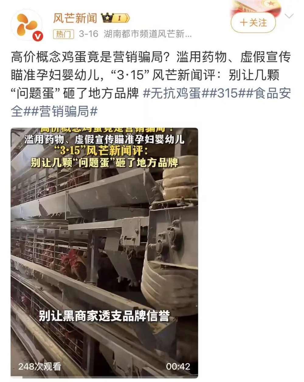 今年“315”,风芒新闻还报道,在河南固始县,记者发现部分所谓的“农家虫草蛋”“无抗精品土鸡蛋”,实际来自高密度笼养、喂饲料的养殖场。有养殖户直言“无抗是骗人的”,鸡生病仍需用药。更有甚者,将不同包装的鸡蛋随意拆封重装,保质期被人为延长,溯源成难题。部分养殖户还承认使用人用抗生素甚至国家明令禁止的磺胺类药物,存在安全隐患。