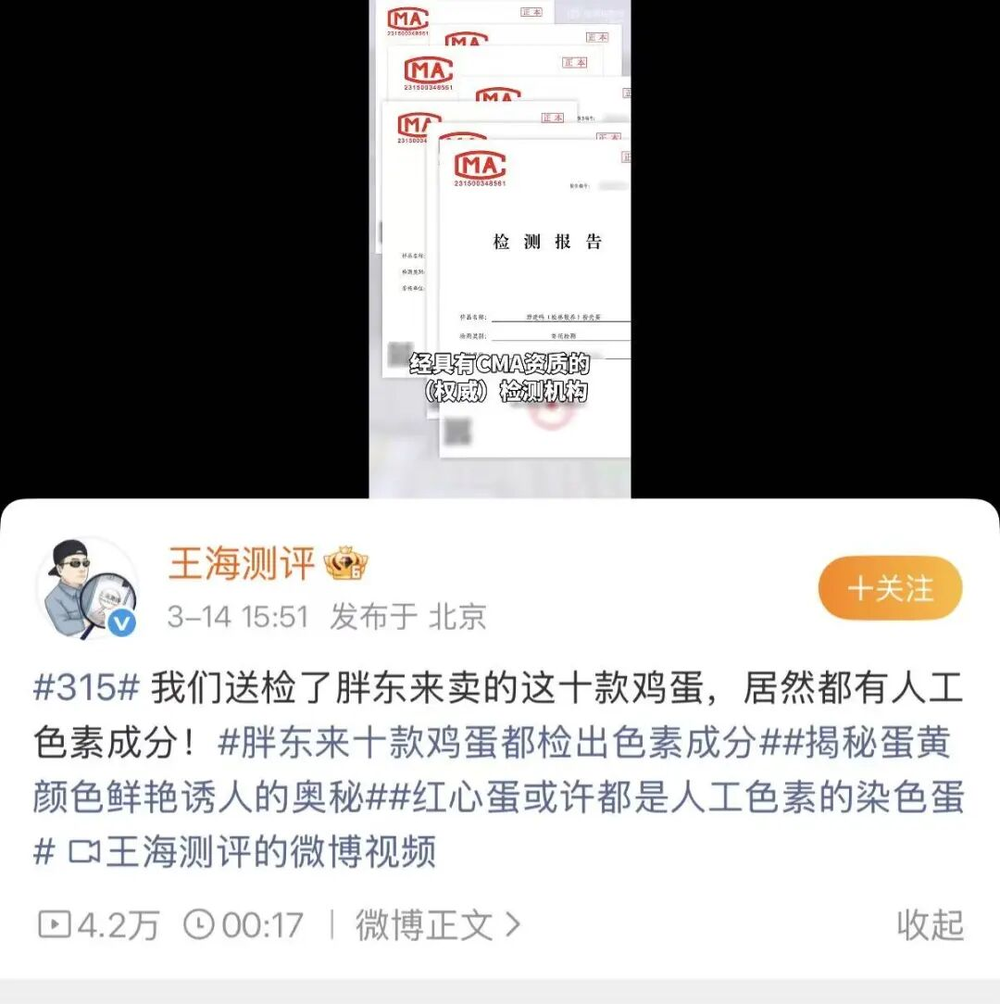 王海团队则咬定公众朴素的知情权。他们希望胖东来正面回应:散养鸡蛋中为何会检出角黄素?该色素来源是否为蛋鸡饲料添加?为何在产品标签或销售页面中未作提示说明?