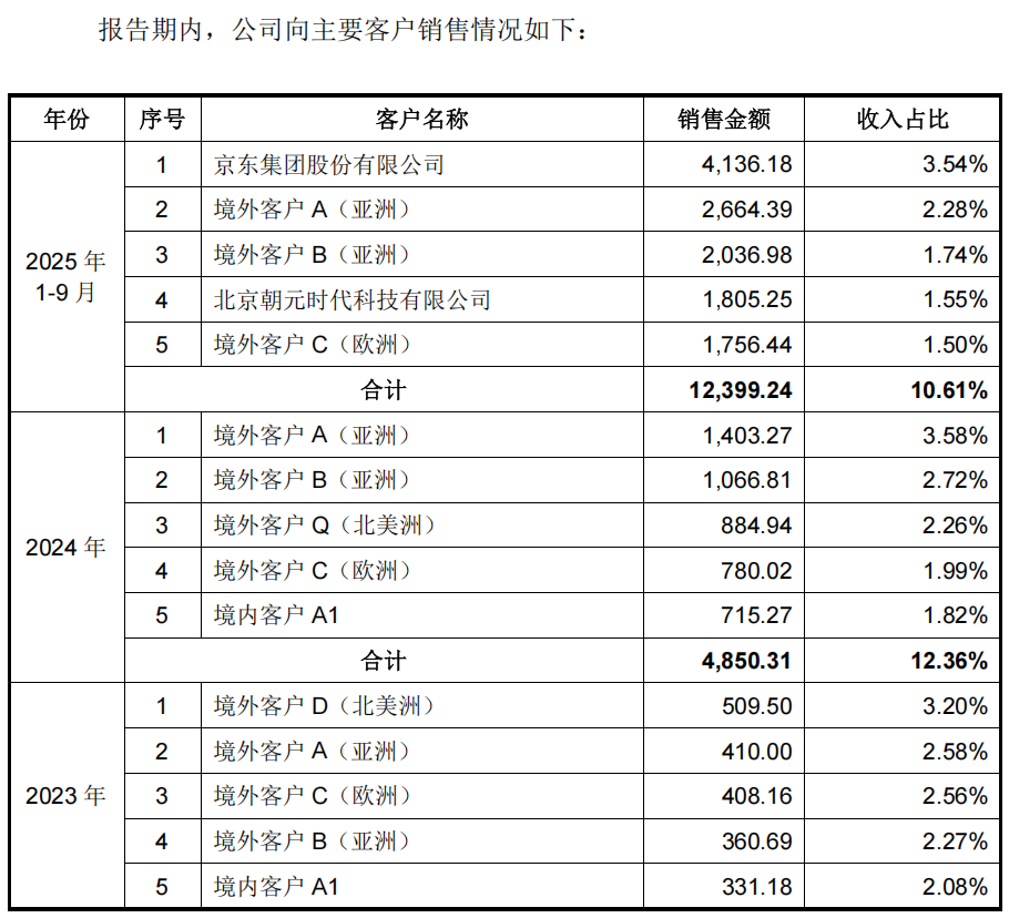 前五大客户营收占比低于15%,京东成第一大客户