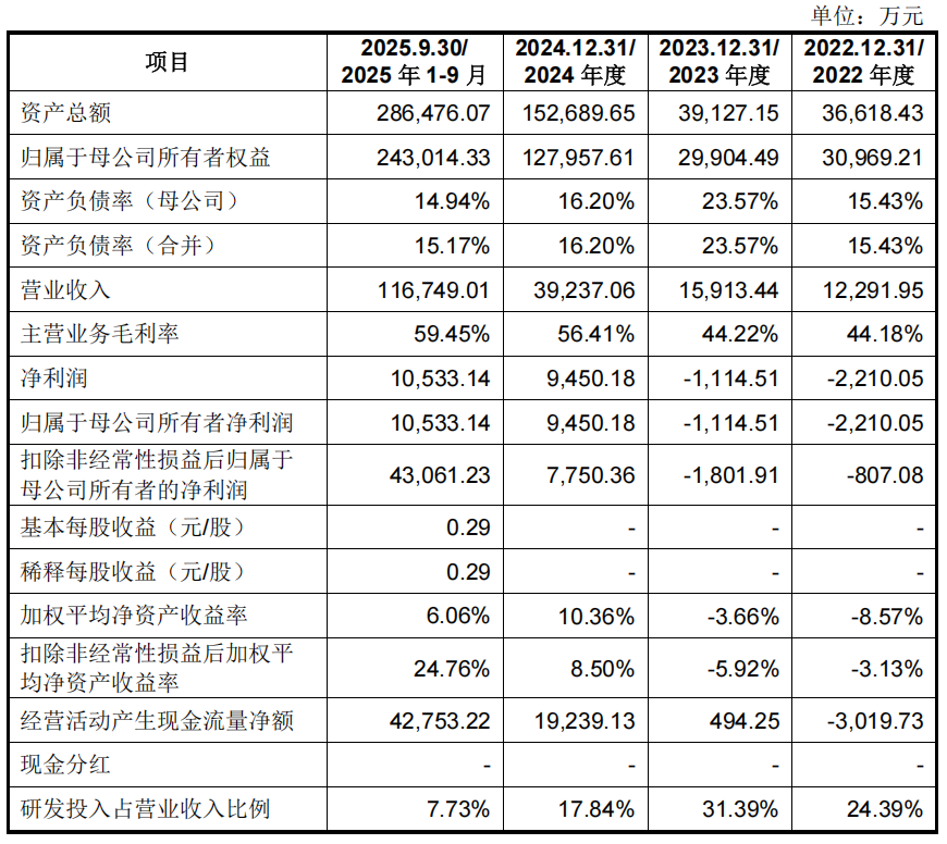 业绩方面,宇树科技2022年、2023年、2024年、2025年1-9月营收分别为1.23亿、1.59亿、3.92亿元、11.67亿元;净利分别为-2210万、-1115万、9450万元、1.05亿元;扣非后净利分别为-807万、-1802万、7750万元、4.31亿元。