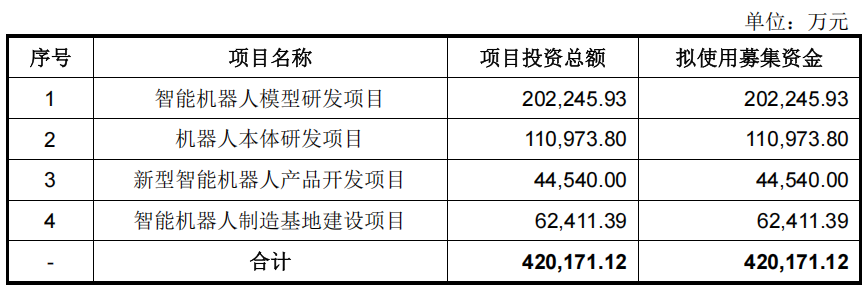 拟募资42亿元,加码机器人研发