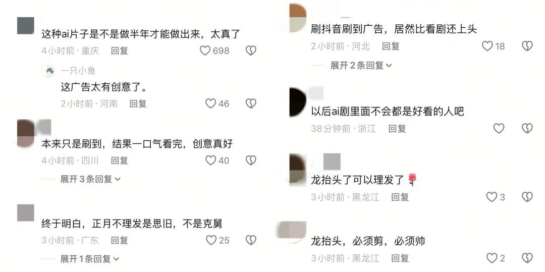 为了帮助商家尤其是新品牌抓住此类节点机遇,今年3月,抖音电商在“龙抬头”这一传统民俗节点,率先推出全AI制作的短剧形态广告,并配套发布“龙抬头”互动特效模板供商家复用,不仅降低了参与门槛,更展示了“AI+节点营销”的全新可能。