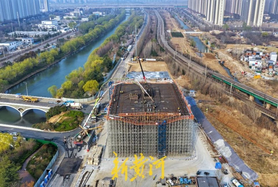 该箱梁紧邻南水北调输水暗涵这一国家级重要水利通道,施工全过程实施高精度沉降监测,严密管控施工扰动,全力保障输水暗涵结构稳定与运行安全,以精细化施工守护民生水利工程安全。
