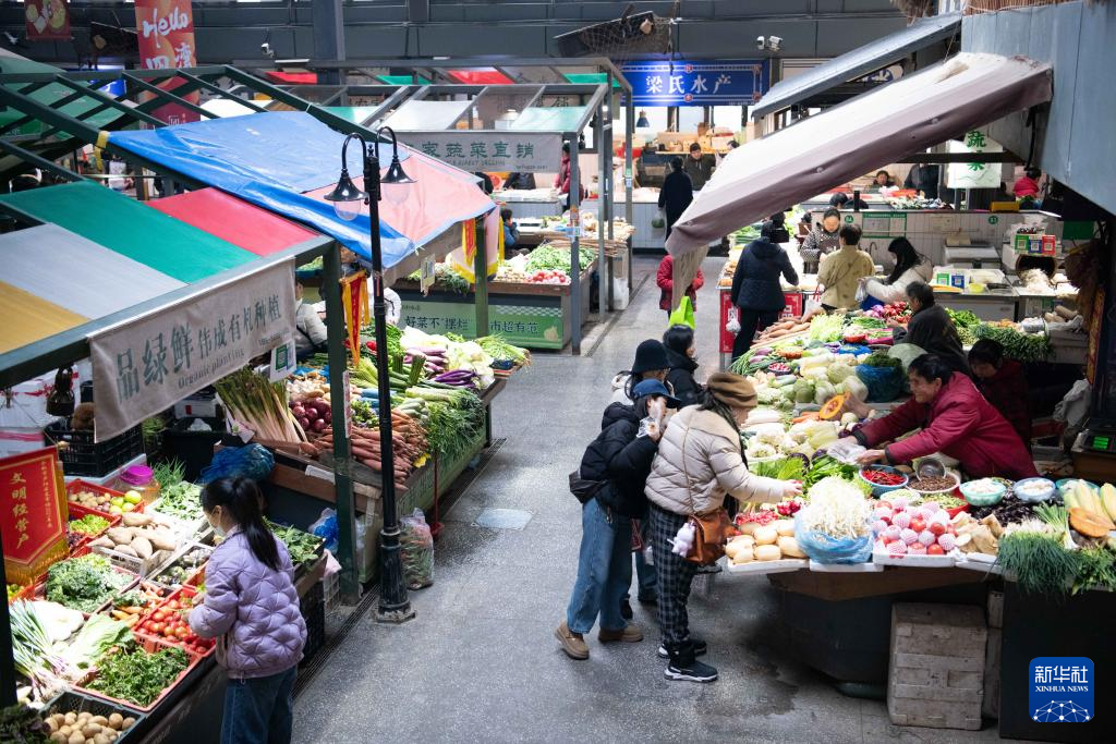 3月11日,在安徽省合肥市庐阳区四湾菜市,市民在选购蔬菜。