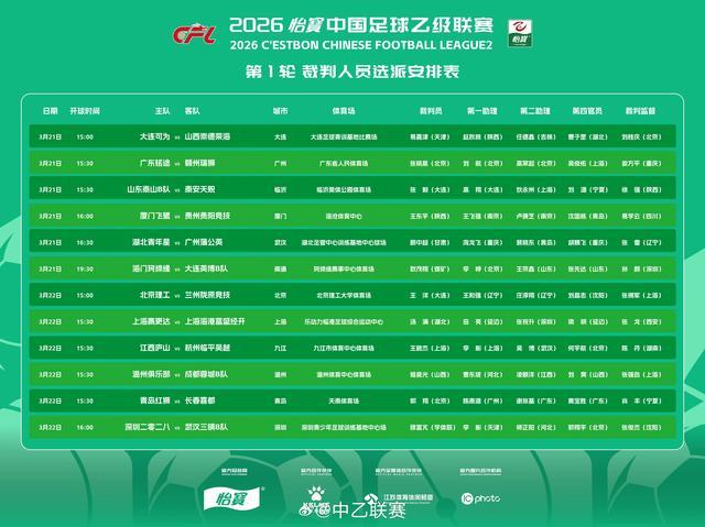 北京时间3月21日,中乙首轮裁判名单公布,顾中超执法湖北青年星vs广州蒲公英。