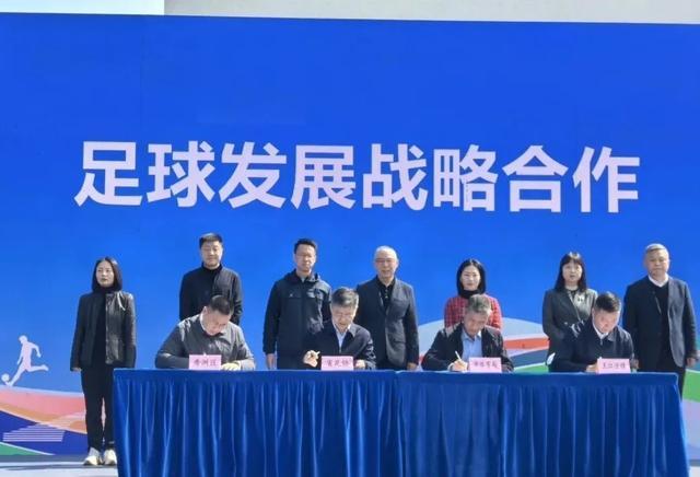 在四方合作签约环节,省足协常务副主席陆翔代表签约,省足协主席夏海伟、嘉兴市副市长周连昆、嘉兴市体育局局长施如玉、秀洲区委书记张锡锋、秀洲区委副书记王江泾镇党委书记金剑毅等领导共同见证。
