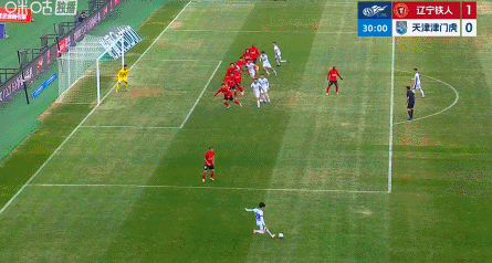 第77分钟,邦本宜裕传中,安以恩原地摆腿兜射破门,辽宁铁人2-0!
