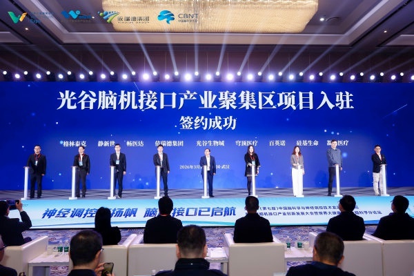 同时,光谷生物城与依瑞德集团、穹顶医疗、神畅医疗、百英诺、格林泰克、凝动医疗、静新世、硅基生命等企业代表共同完成光谷脑机接口产业集聚区项目入驻签约,标志着武汉脑机接口产业集群建设迈出重要一步。