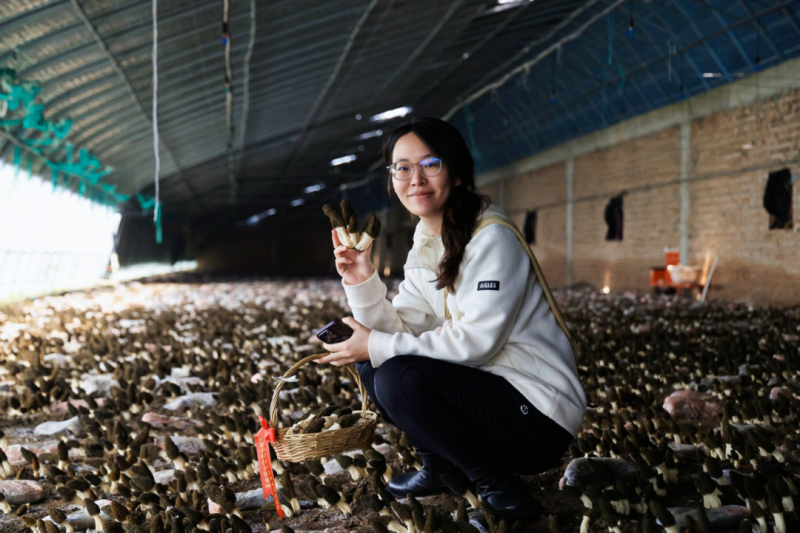 园区内种植的羊肚菌正值采收期,游客手提采摘篮,穿梭田间,体验田园劳作的乐趣。许多家庭带着孩子一同采摘,享受亲子时光。