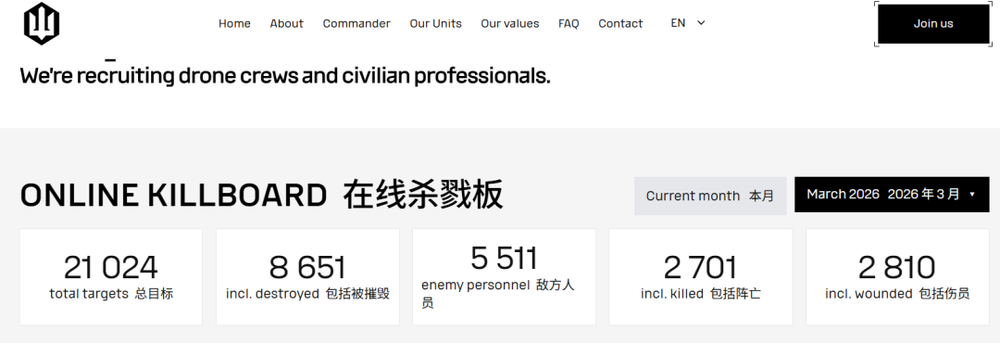 在USF的官网,有一个数据表,实时滚动着该部队在作战中的“战绩”。