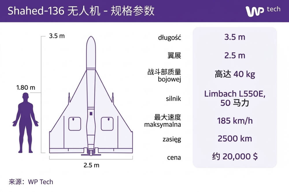 “沙赫德-136”的结构压缩到最简,RCS极低。飞行高度仅有50-100米,速度约180-185公里/小时,和一只求偶期的雨燕速度差不多。