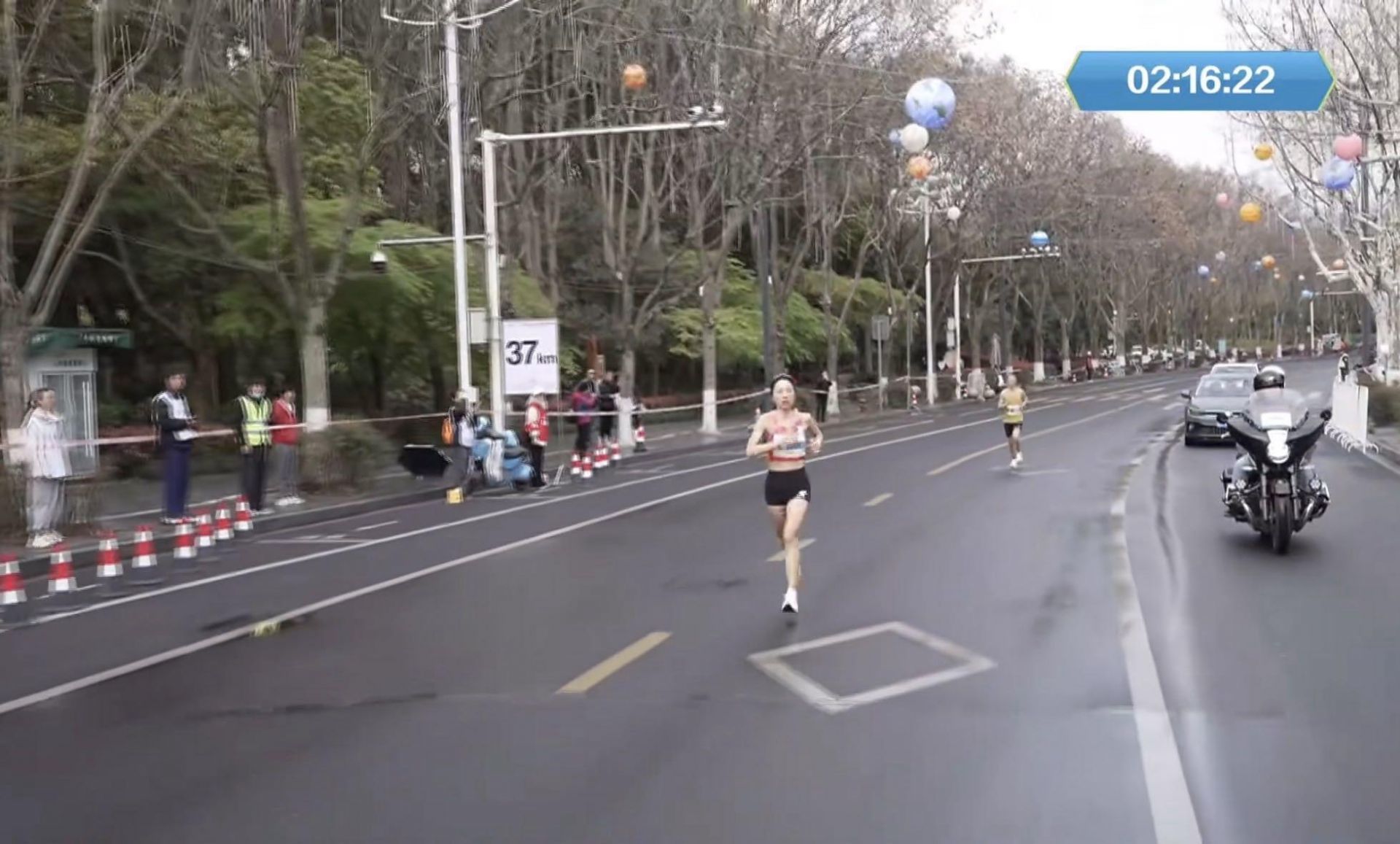 9时40分许,极目新闻记者在直播中看到,当天张水华以2小时35分49秒(最终成绩需经组委会认定)冲线,斩获丽水马拉松女子组冠军。